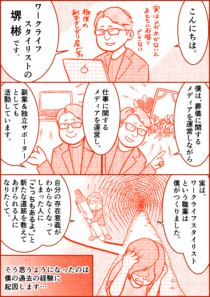 2年に渡る副業時代(当時は舞台の裏方スタッフが本業でした)に作成した自身のプロフィール漫画です。