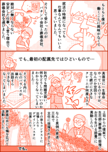 社名とご本人の信念が強く結びついているエピソードを伺い、漫画の主軸としました。